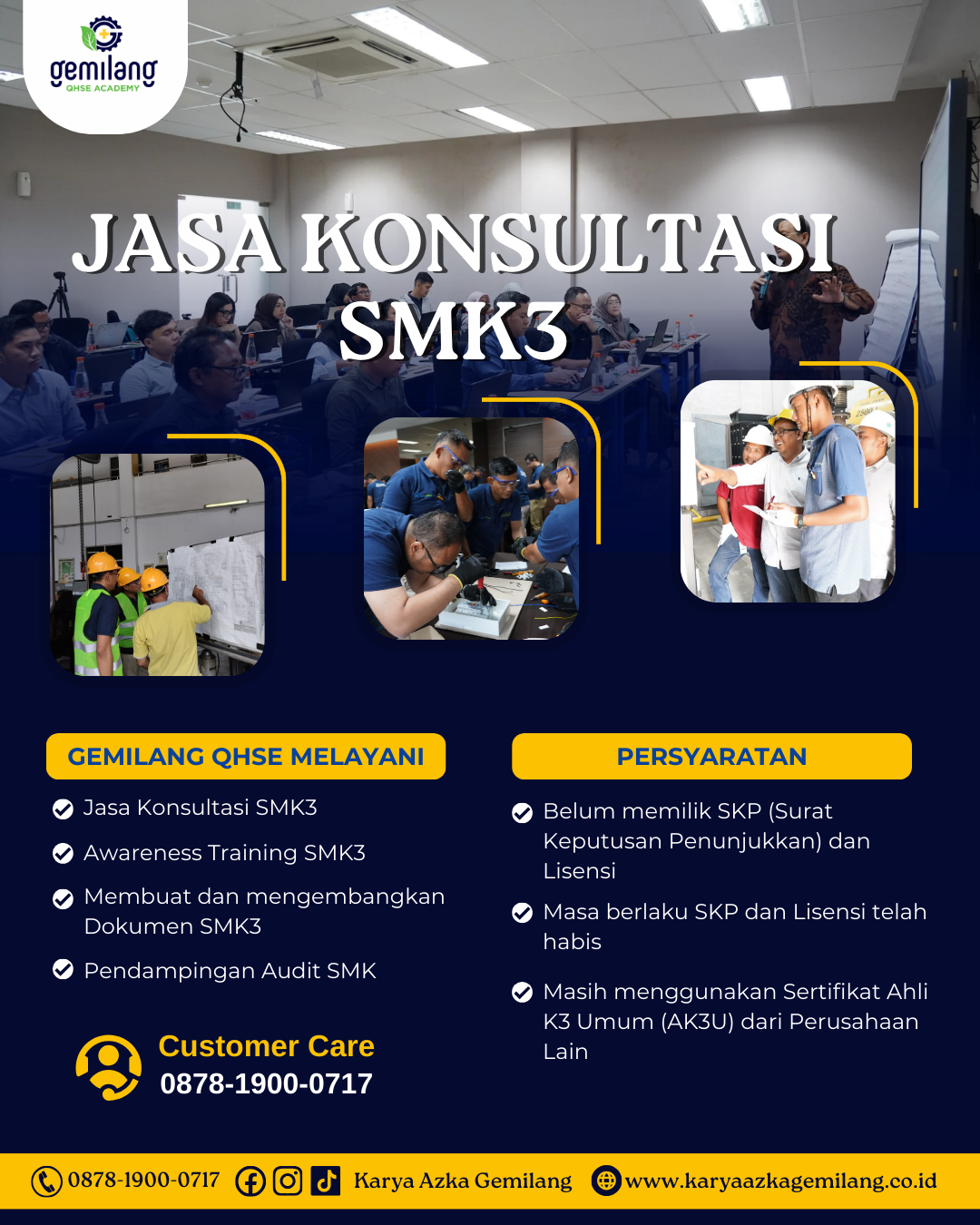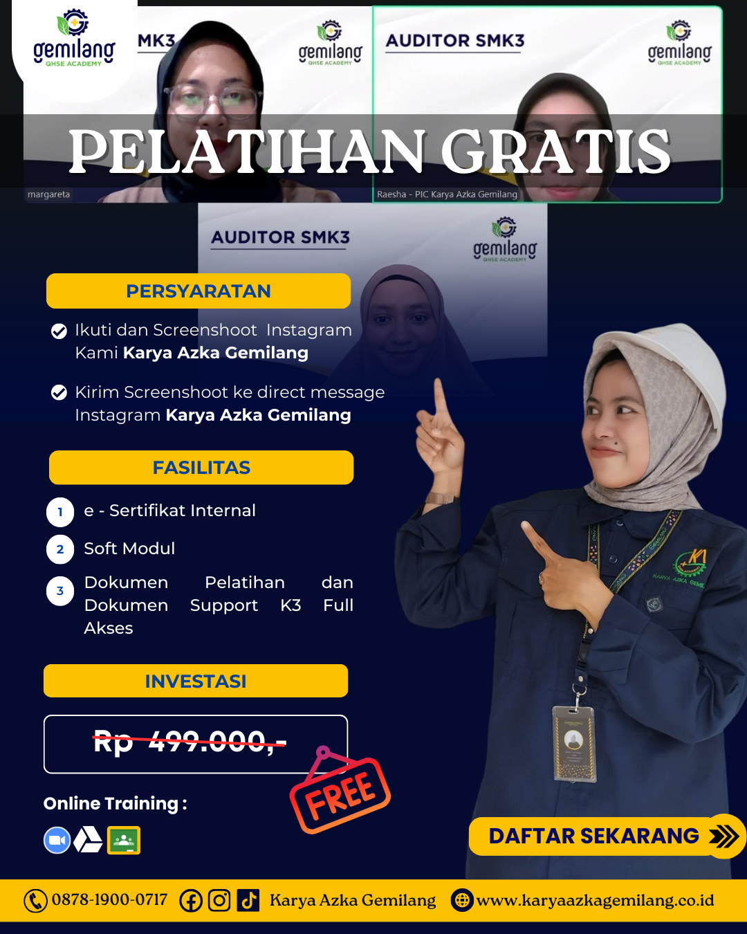 Pelatihan komprehensif untuk menjadi Ahli K3 bersertifikasi. Tingkatkan keterampilan Anda di bidang keselamatan dan kesehatan kerja dengan program yang diakui secara nasional.